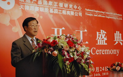 ??? 2010年9月24日上午,細(xì)胞產(chǎn)品國(guó)家工程研究中心研發(fā)大樓奠基式在天津?yàn)I海新區(qū)隆重舉行。會(huì)議由天津昂賽細(xì)胞基因工程有限公司副總經(jīng)理主持,細(xì)胞產(chǎn)品國(guó)家工程研究中心主任韓忠朝教授致詞,天津市科委副主任陳養(yǎng)發(fā)及濱海新區(qū)科委主任黃亞樓都在奠基儀式發(fā)表講話。