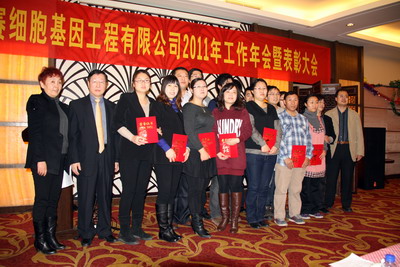 2011年12月30日上午10時,天津昂賽細胞基因工程有限公司2011年度總結(jié)大會于天津市濱海新區(qū)惠中酒店一樓宴會廳隆重召開。出席會議的有昂賽公司總經(jīng)理韓忠朝、副總經(jīng)理、行政總監(jiān)盛滬寧、項目總監(jiān)潘爾勤、以及公司各部門負責(zé)人和全體員工。會議在昂賽公司行政總監(jiān)盛滬寧的主持下拉開帷幕。