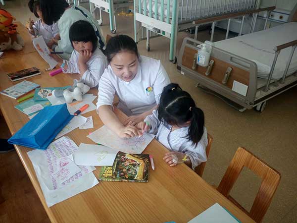 在此期間,為了緩解孩子們就醫(yī)期間的空虛,照顧他們住院期間的生活,昂賽細胞的同事們?yōu)楹⒆觽儙チ司臏蕚涞墓?jié)目以及書本、畫筆與各種玩具,陪伴孩子們一起度過歡樂的時光。
